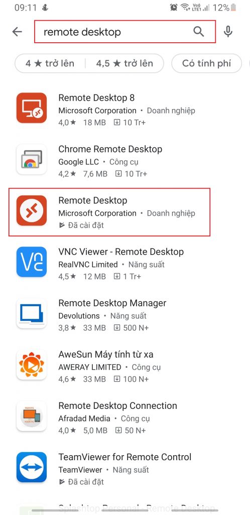– Mở CH Play và tìm kiếm từ khóa “remote desktop”